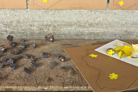 Installation, Bronze/Holz/Karton/Stahl/Kartoffel/Farbe