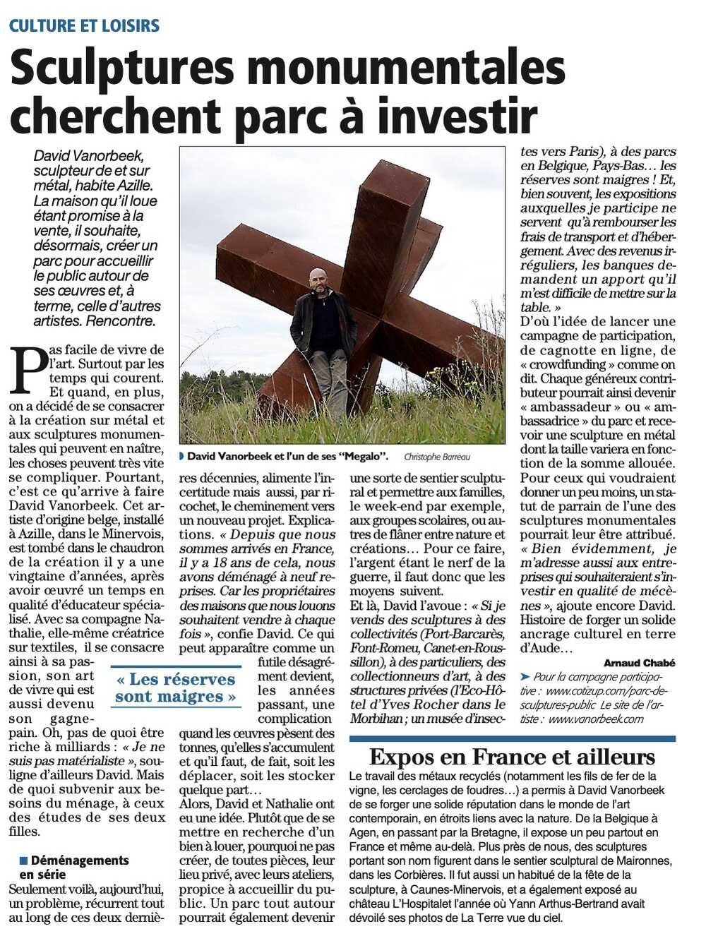 Looking for "investors" to create a sculpture park in the area where I live (South of France - La Minervois).