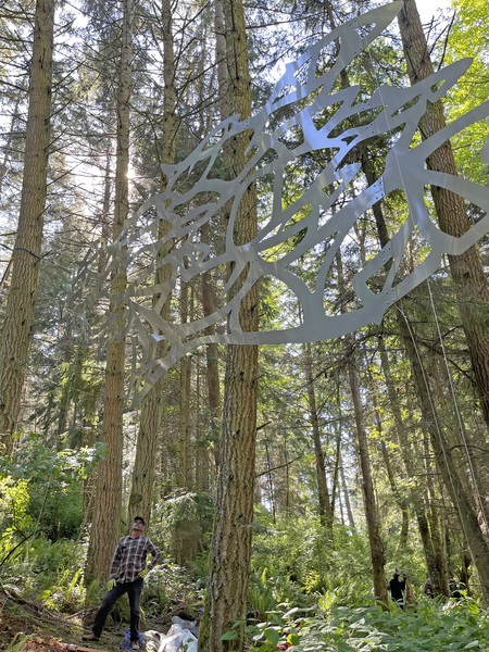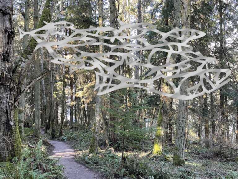 Flying Fish was sparked through a series of collage sketches with fish forms. I loved the feeling of an underwater forest. Fascinating. The metaphor of the forest being a sea of subconscious holds the mysteries that I feel among the trees. I am fascinated how the subconscious plays in daily life. Inspiration paired with feelings emerge to the surface.