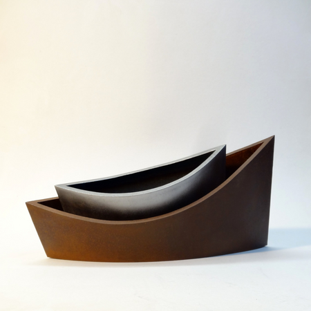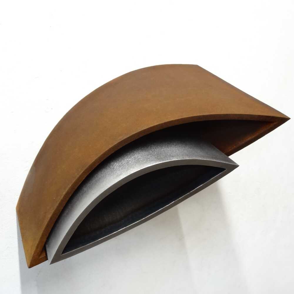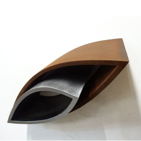 Wandskulptur, Corten-Stahl teilweise gerostet, Hohlkörper nahtgeschweißt