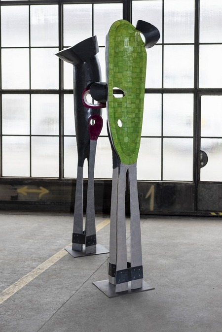 The King and the Jester - like human beings they stand face to each other leaving a gap for visitors to slip through and immediately feel in a tense situation between two extremes: King – Jester, dominant – serving, strong – weak, good – bad. Alternatively, visitors can place right behind the figure so as to put on the mask as an actor and to see its opposition through the restricted sight of the mask. If you dare to act as the King you are forced to see the Jester’s freedom and informality, if you slip in the role of the Jester you will be remembered at the King’s rules. Due to tallness and reflective potential the installation is for men only.