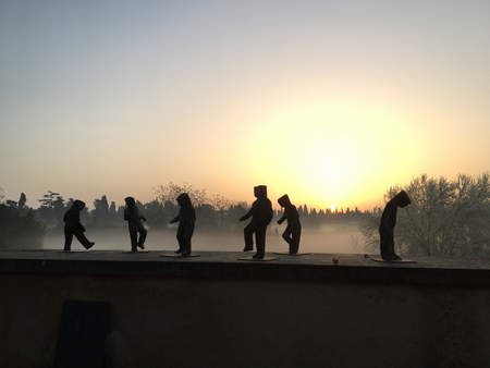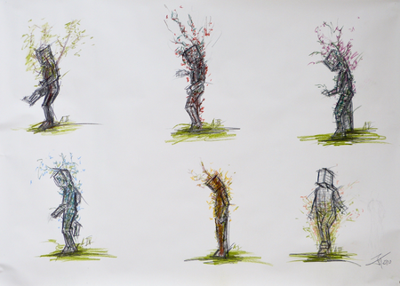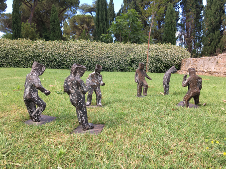 6 different sculptures of various heights made of galvanized iron. Inside these ʻgiant children',
