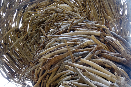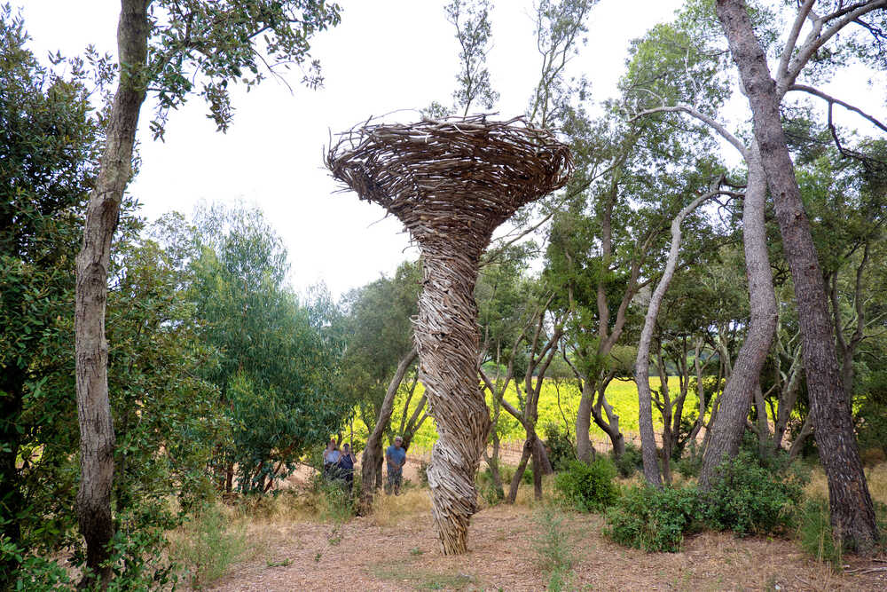 The Tourbillon is composed of driftwood, gathered by the artist and the National Park teams on the island‘s coasts. Carried by the sea currents around Porquerolles, the pieces now tirelessly continue their flight among the trees.