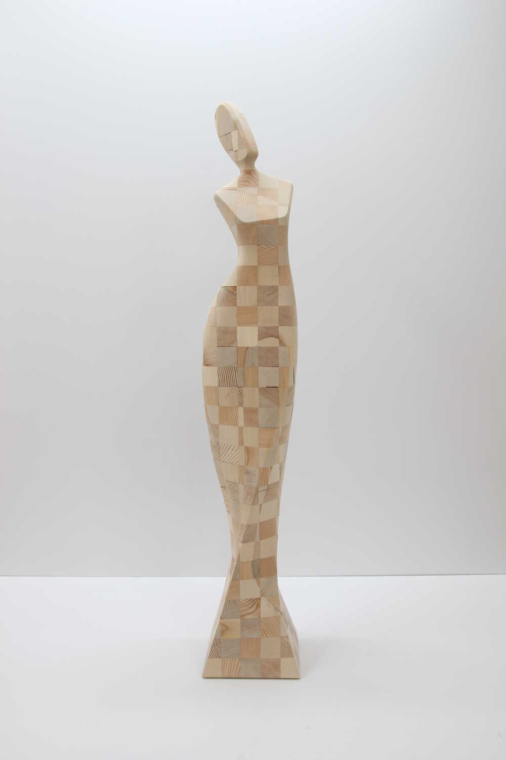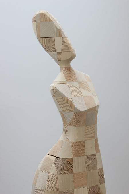 Ähnlich wie bei der Serie „human flow“, versucht sich der Künstler auch hier, durch die Verbindung von einfachen, geometrischen Formen und dem anschließenden bearbeiten des Holzes, der menschlichen Form anzunähern.