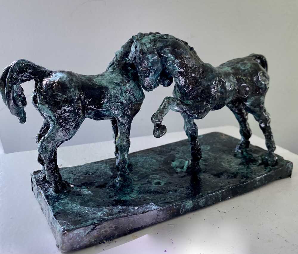 Two horses meeting. Modelled after the drawings of Leonardo da Vinci.