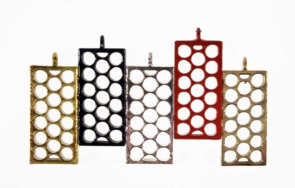 The bricks are covered with a layer of gold (24 carats) or silver; or lacquered in red, black or brick red. This brick is patented and signed.