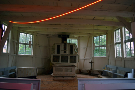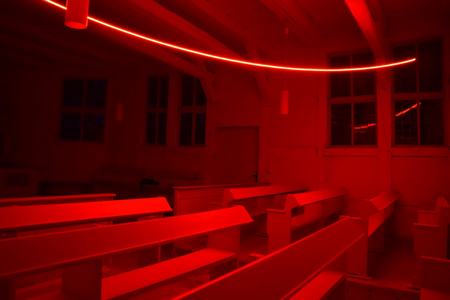 the thin red line / die rote Linie, der schmale Grat. 2021 Installation Dorfkirche Meierstorf