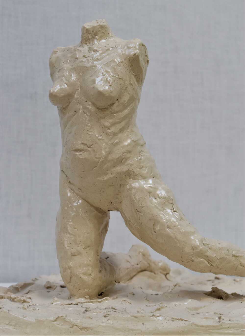 “Arise” shows a female figure getting up. Still without arms and a head, but the movement has begun. It is an inner rise and a beginning to believe in one's own strength and dignity.