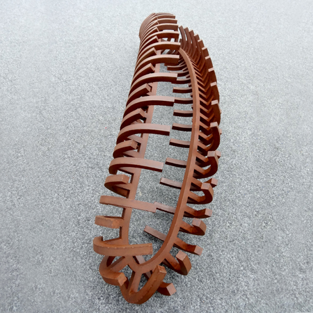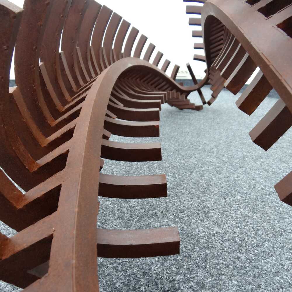 Stahlskulptur aus gerostetem Corten-Stahl, punktgeschweißter Hohlkörper (ca. 6000 Schweißpunkte)