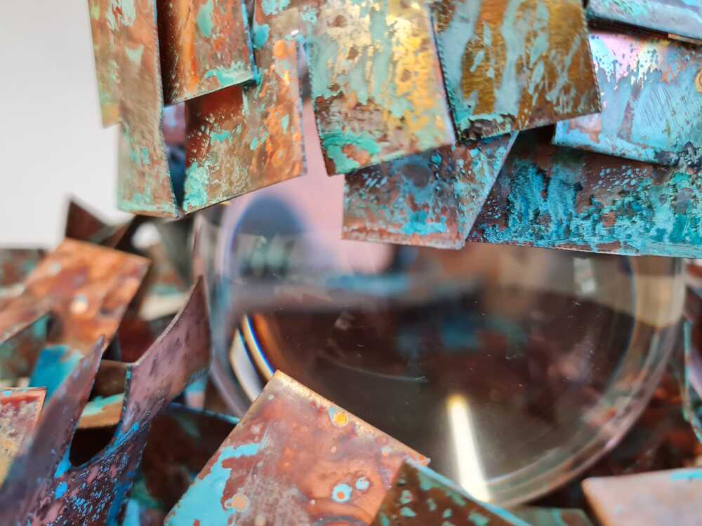 Kupferblech mit Patina, Glas