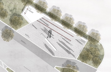 Der Gedenkort nimmt wesentliche Bezüge zum ehemaligen Güterbahnhof auf und entfaltet dabei eine markante Platzsituation mit Aufenthalts- und Erfahrungsqualität. Die geplanten Sitzmöglichkeiten, eine Überdachung, sowie die Beleuchtung des Platzes machen den Ort auch nachts, sowie und bei schlechtem Wetter erlebbar, erfahrbar und nutzbar.
