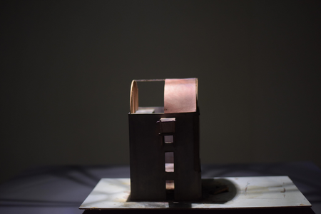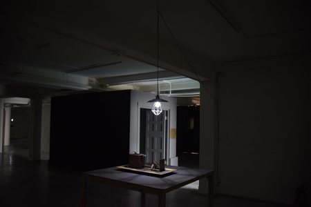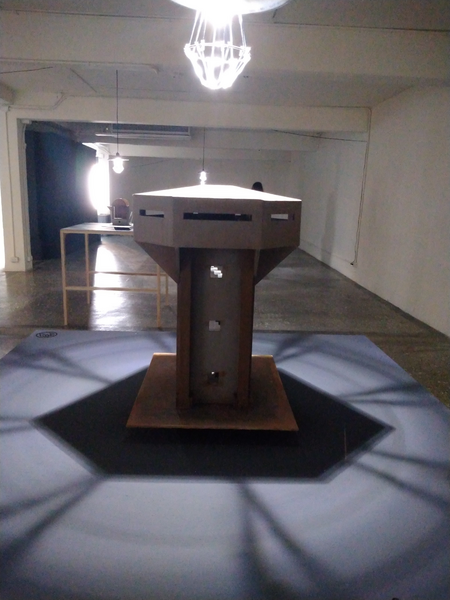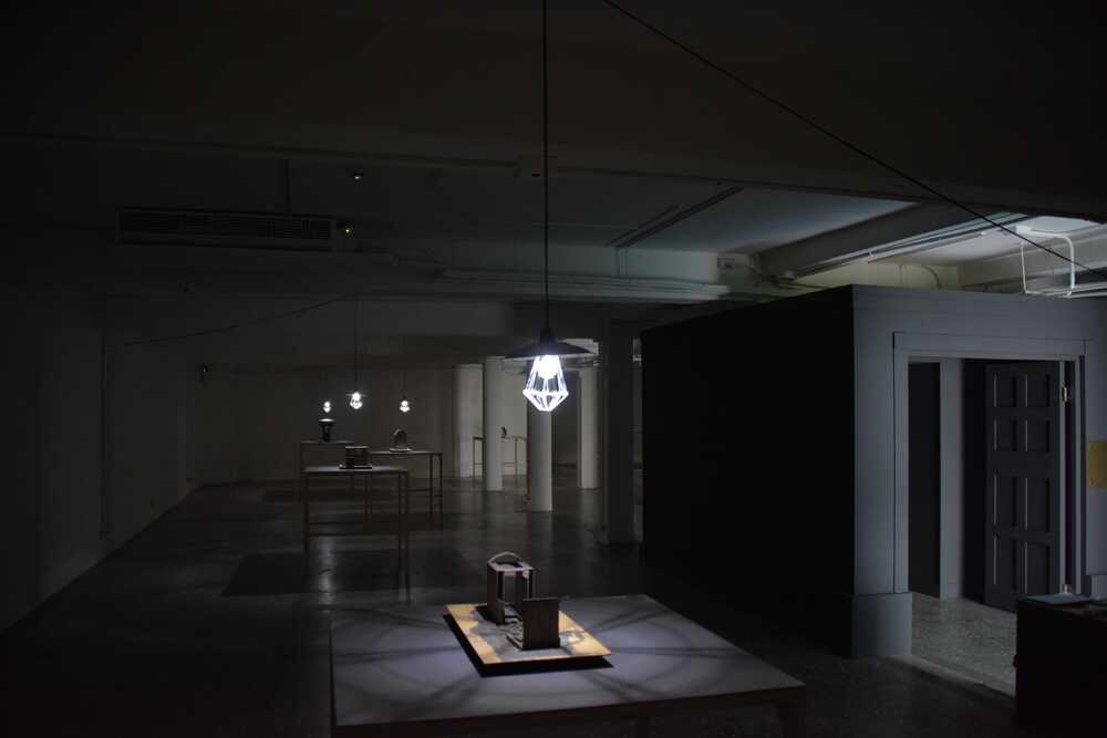 The installation comprised 8 architectural models on tables of 100 x 100 x 100cm, with each table lit by a single work light with a daylight LED bulb. The entrance into the space was through a structure based on official buildings, and drawing on the previous project Embassy.