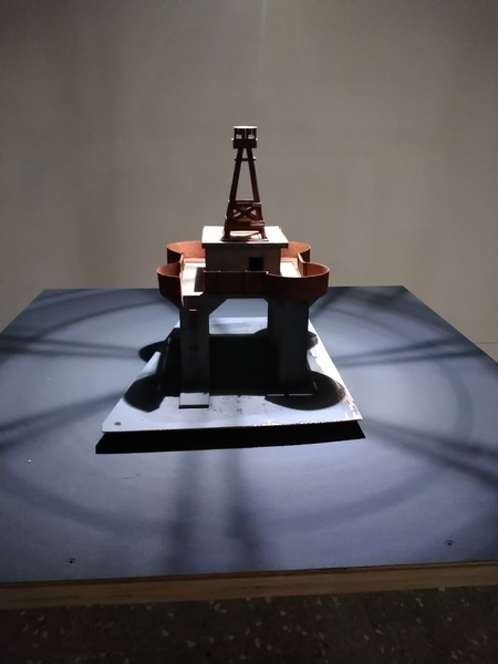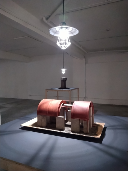 The models are of concrete buildings that exist between military infrastructure and industrial ruin, structures designed with a purpose that is no longer discernible. The architecture reflects memories of edge-lands; in the UK around the River Mersey towards the industrial centre of Widnes; and in Taiwan the coast around Taoyuan Airport. These sites are unfixed in time, seemingly as if ghosts from a future catastrophe.