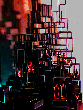 Nach der Zerstörung Aleppos 2016 entstand "Memorial for Aleppo", eine Installation mit Bronzefiguren und eisernen Ruinen, mit Putin und dem ordinären Faschisten als einsame Sieger.