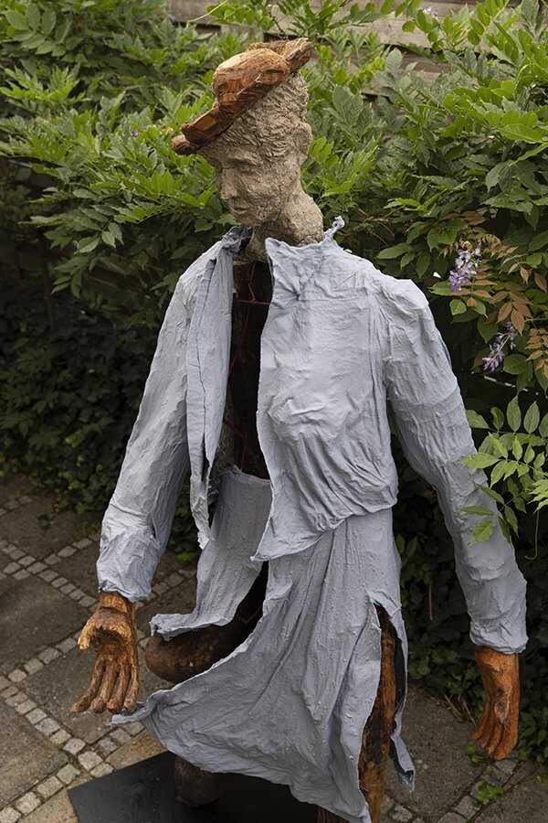 Frauenfigur aus verschiedenen Materialien (Holz, Draht,Stoff, Ton)