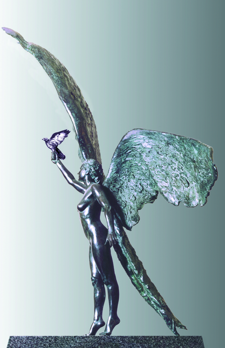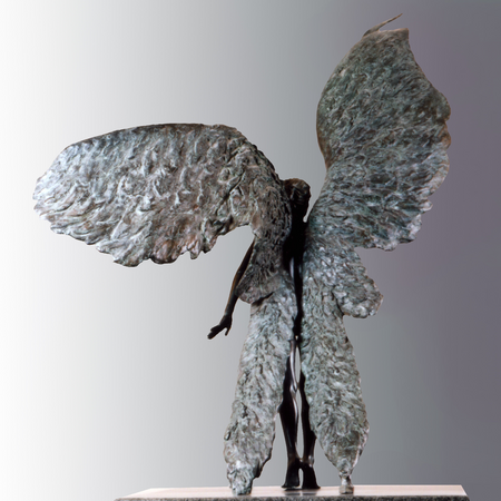 Perhaps it is with this sculpture, that I come closest to demonstrating what I would like to convey when I speak of the Spirit in my work. The winged spirit, or figure, has come to me several times as a subject upon which I have sought to create a piece but, only here, has this image manifested itself in a truly powerful form.