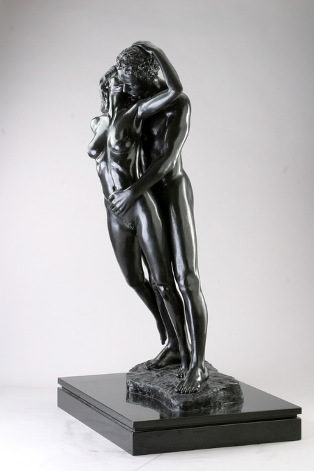 This couple is in the throes of a close embrace with the male figure’s feet firmly placed on the ground, while the female’s leg seems ready to leave the ground she stands on. This work was not meant to be an erotic piece, yet it often receives flustered questions and criticism.