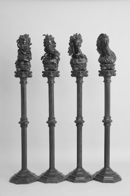 Medusa is depicted through four separate portraits each becoming increasingly grotesque as they describe the evolution from mortal to monster.