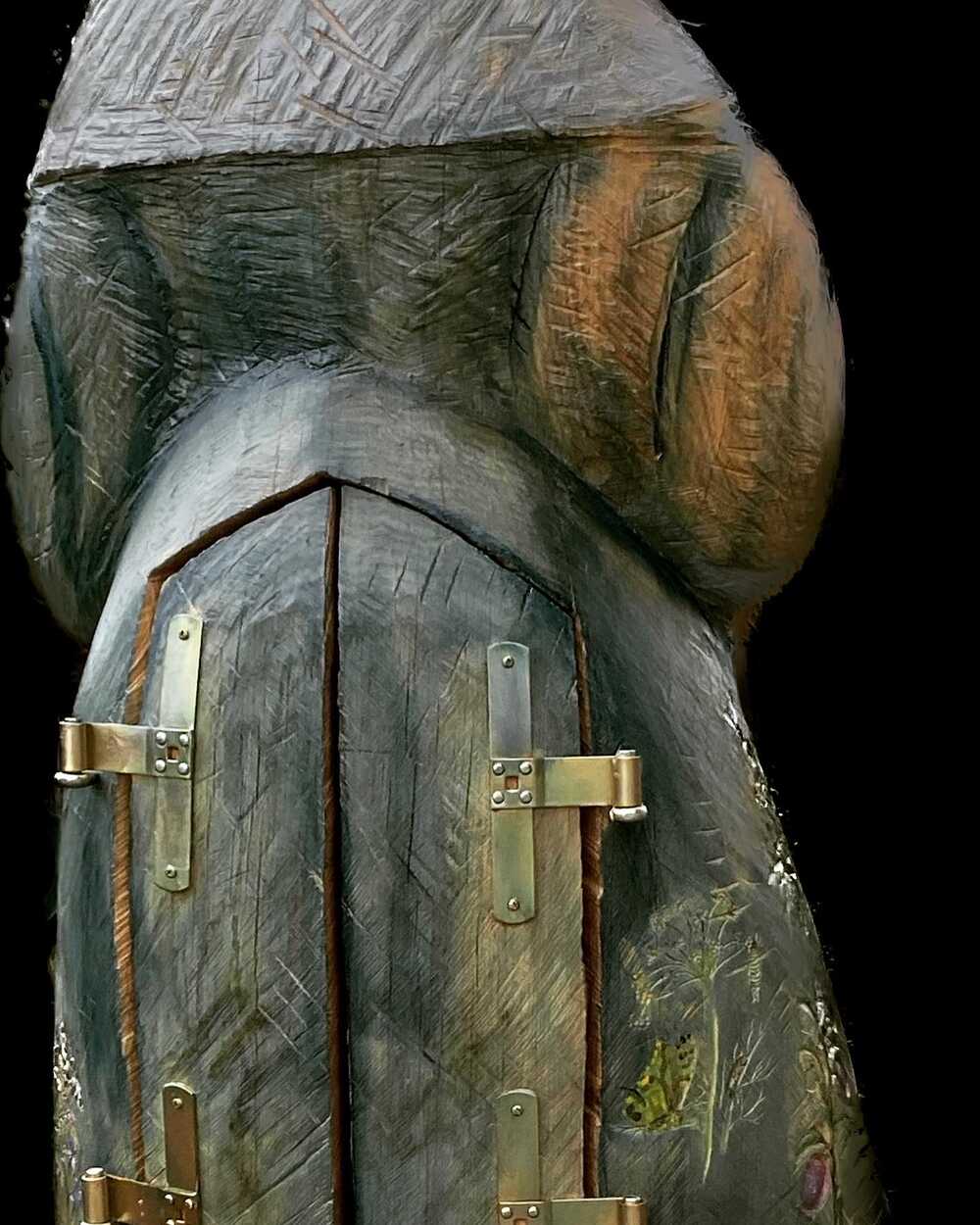 Bienenstock. Hinter dieser Türe leben wilde Honigbienen. Diese haben in freier Wildbahn hierzulande kaum eine Überlebenschance. Betreut in 'schöner Wohnen' für Bienen ist die Chance schon größer.