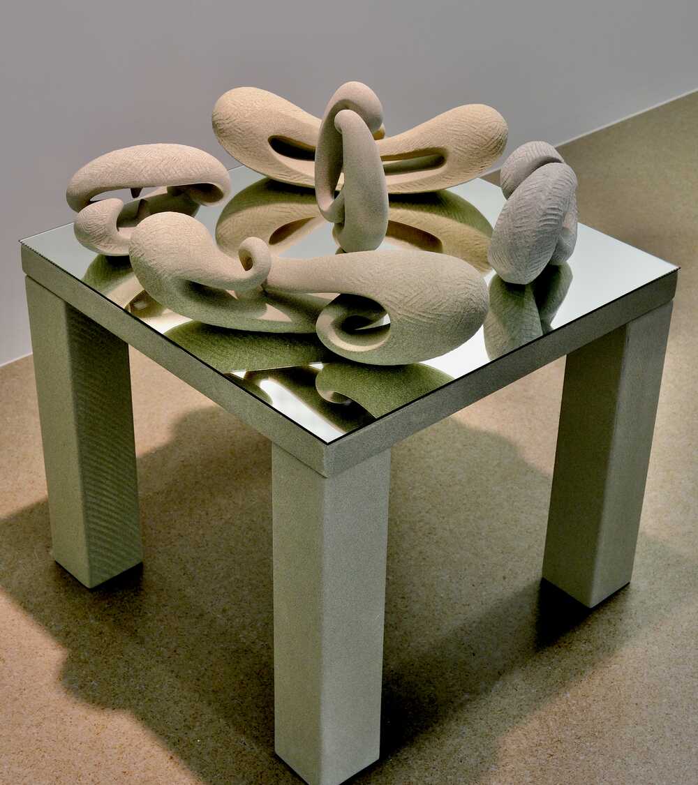 sandstone, movement , connections and flowing forms on a mirror