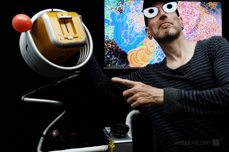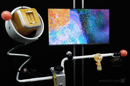 But maybe this apparatus is just a way to paint with a toaster, a horn and a dial.