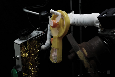 Unfinished, improvised, flawed, not thought through to the end. Why strive for an end at all? A few preconceived A-ways were the trigger for this object, but perfection would be a contradiction in terms with this apparatus. The device can be used, or should I say served, without further instruction.