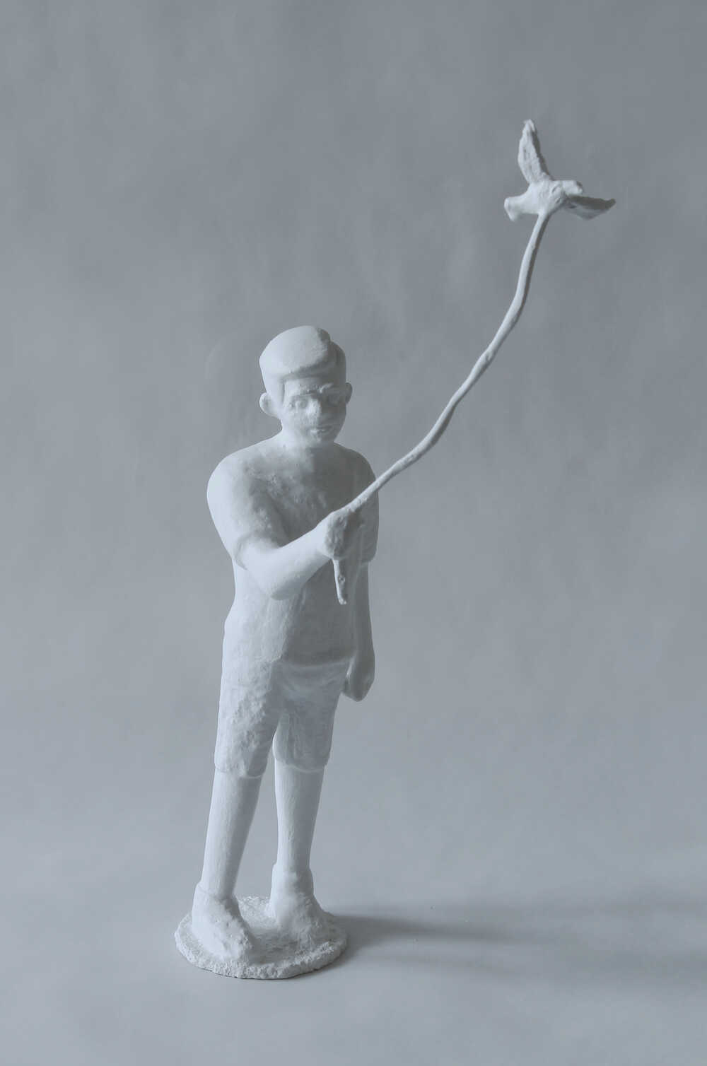 The predominantly monochromatic white sculptures show, in essence, an expressive simplicity, they nonetheless bear an extraordinary air of significance. The works achieved their current form through the artist’s development from more colourful, epic scenes through the harmonizing of traditional sculptural motifs to their present “OFF white” format of material and thematic reductions. The character of the works can evoke the sensation of almost overwhelming frankness, but this allows us to pinpoint them with a degree of certainty and subsequently auto-interpret their multiple layering within a psychological framework based on lived experience. The viewer becomes an observer of human destiny, perhaps helping them to understand their own fates.