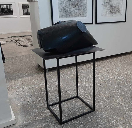 The main idea of the artwork is a fantasy on the topic of the possible frightenning scenarios of the Anthropocene. One of such scenarios may be such that our home-planet Earth gets totally polluted. The water in the Oceans is filled with oil and plastics and becomes dangerous to sea-species to live in, the air gets polluted due to overuse of fossil-fuel and the greenhouse effect raises temperatures and causes extreme weather events: tornados, floods, draughts. Unsustainable agriculture pollutes the soil, makes spiecies extinct, poisons drinking water. The planet becomes unfit to live, we have to give it some time to recover, to restore resources. Meanwhile we have to find alternatives of survival during this period, and one possible scenario is to build spaceships to orbit the planet waiting for the possibility to return back with greater understanding and more caring behaviour to Earth which is our home. Thanks to Nature‘s ability to renew itself, to restore its ecosystems we can hope for the brighter future, provided that we change our attitude and do not consider it as a mere resource for our wellbeing.