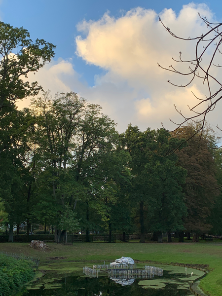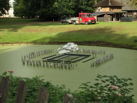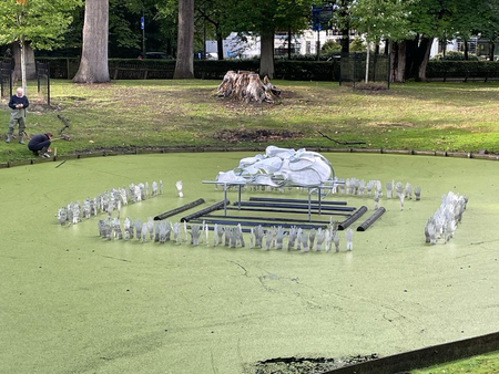 In between, my silent performer lies in the water: the ghost of Hildebrand. His image reflects in the water. his memory, today's story, reflecting on today,… for which a circle of his audience clap. It provides food for thought.