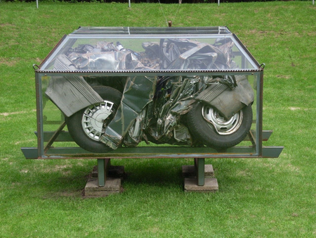 Autocar, transparent printed panels, relic shrine