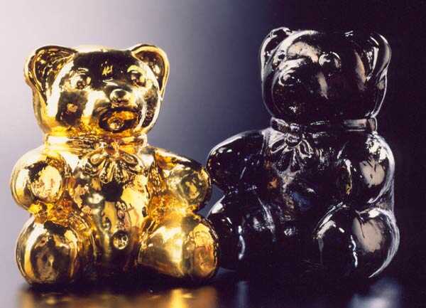Teddy, in Form geblasen, Kristallglas, Farbglas