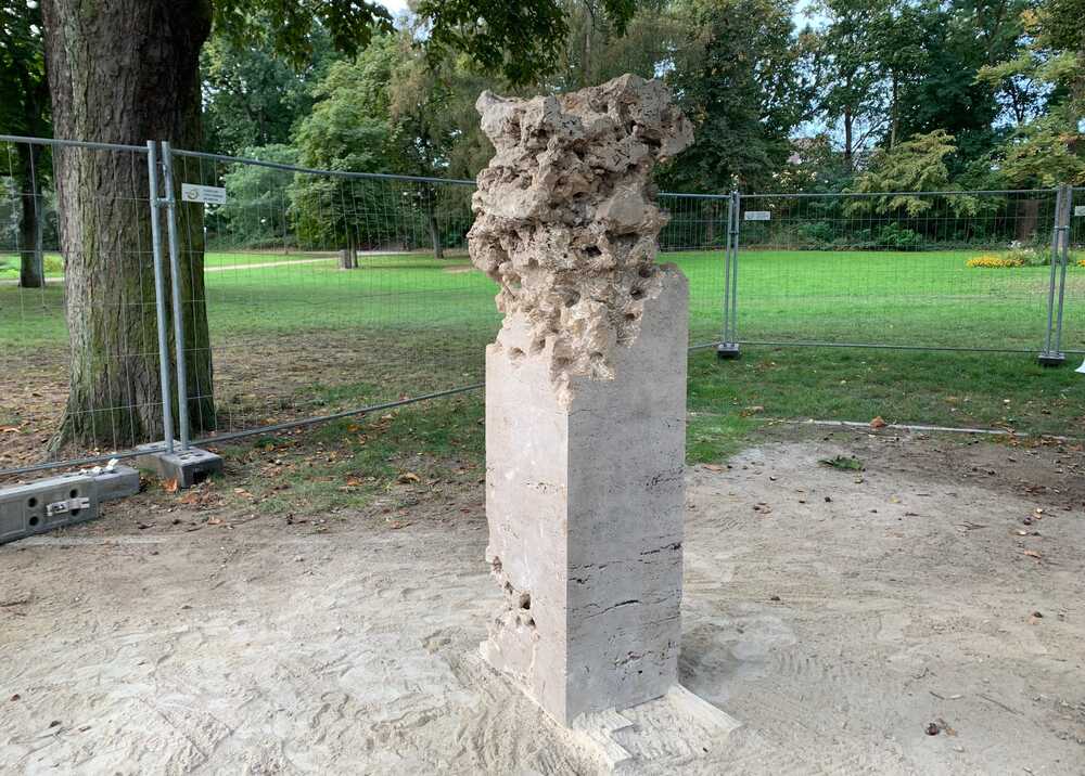 In den solcherweise geöffneten und erzeugten Hohlräumen im oberen Bereich der Skulptur wird sich die Ansiedlung und Veränderung durch Flechten, Insekten und anderen Organismen beobachten lassen.