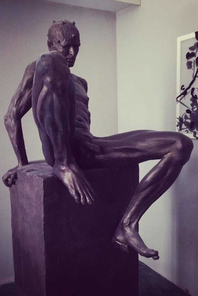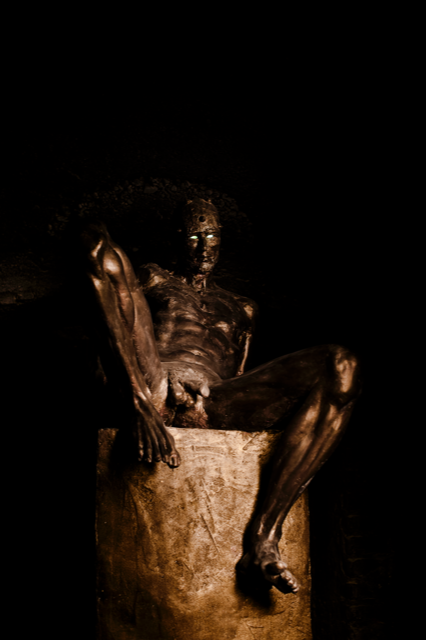 "Adam", 2013, patinated bronze, Reid Crystal Cell (endless battery), LED, glass, 203 x 108 x 87 cm, ca. 350 kg.
