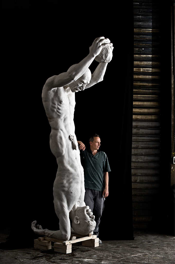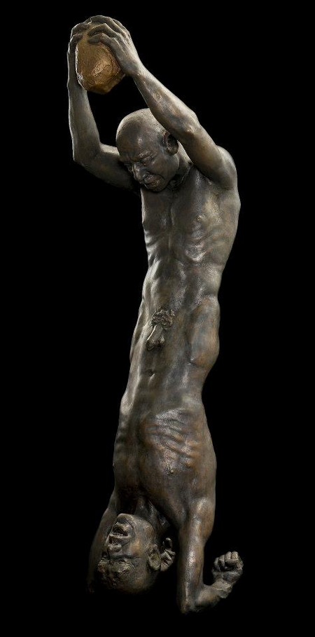 BROTHERS embodies the story of the siblings CAIN and ABEL and moreover the story of all conflict and war - offender and victim of our permanent battle for supremacy. This battle is fused within the sculpture into one inseparable physical entity.