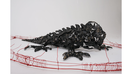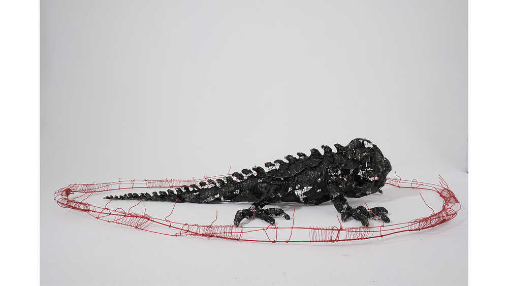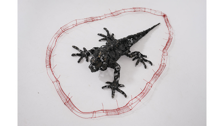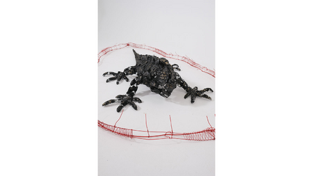In this work, I observe a creature framed by thorny boundaries of its own measures. Trapped within this limit, it is compelled to spend its time without the ability to move.