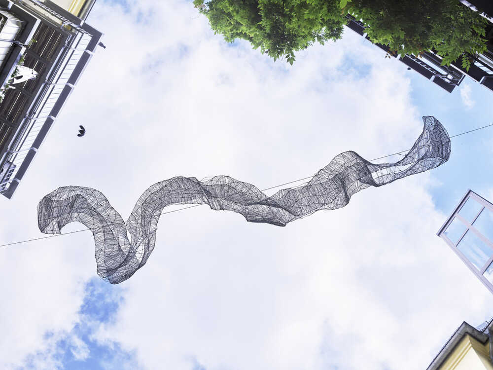 Skulptur im Außenraum, Bronze/ Kupfer, weiß pulverbeschichtet