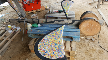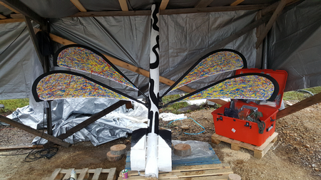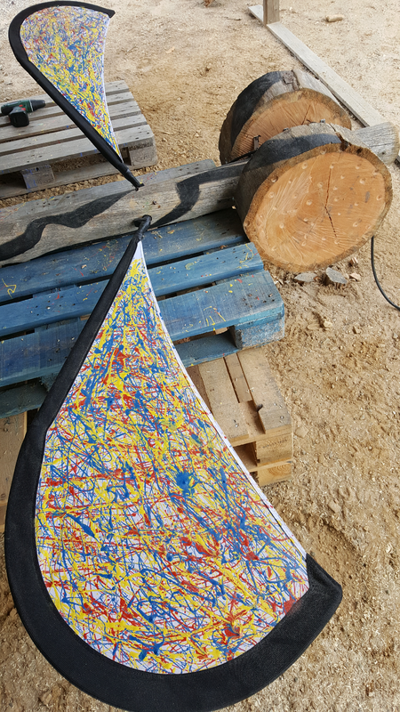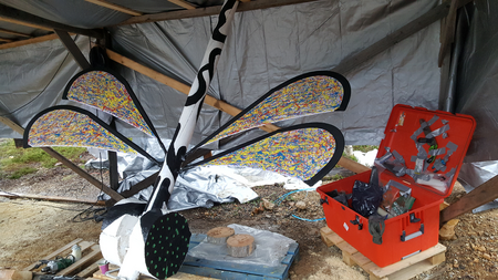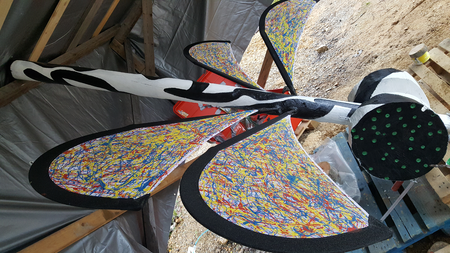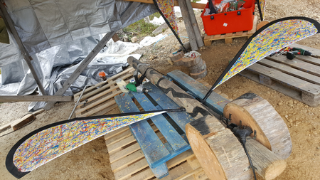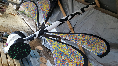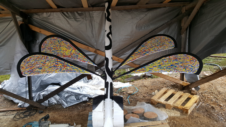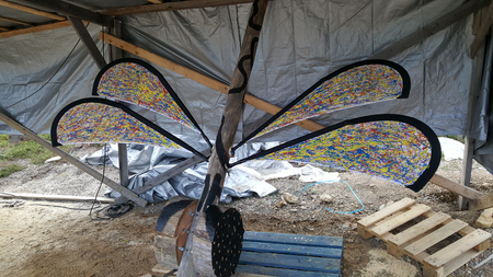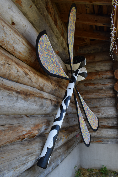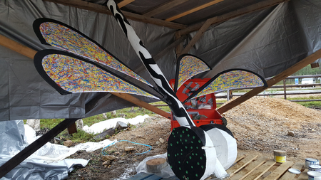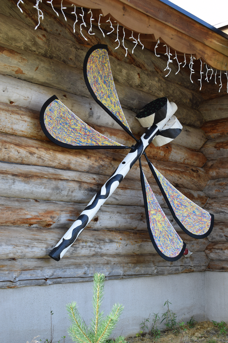 By virtue of these premises, I have recently thought of dragonflies, as expressions of the "genius loci" suspended between water and air, between meadow and forest, as they are rich in symbolism, legend and ecological meanings. I thought to create something that refers to giant dragonflies, as their ancestors could have been in distant geological eras, long before the arrival of man. A small flock of these giant dragonflies has decided to fly north and lean against the wooden wall of one of your houses.