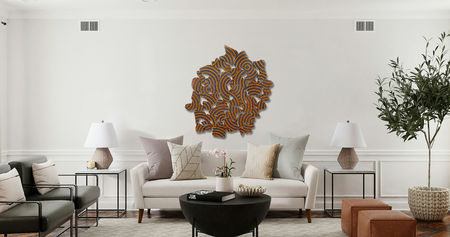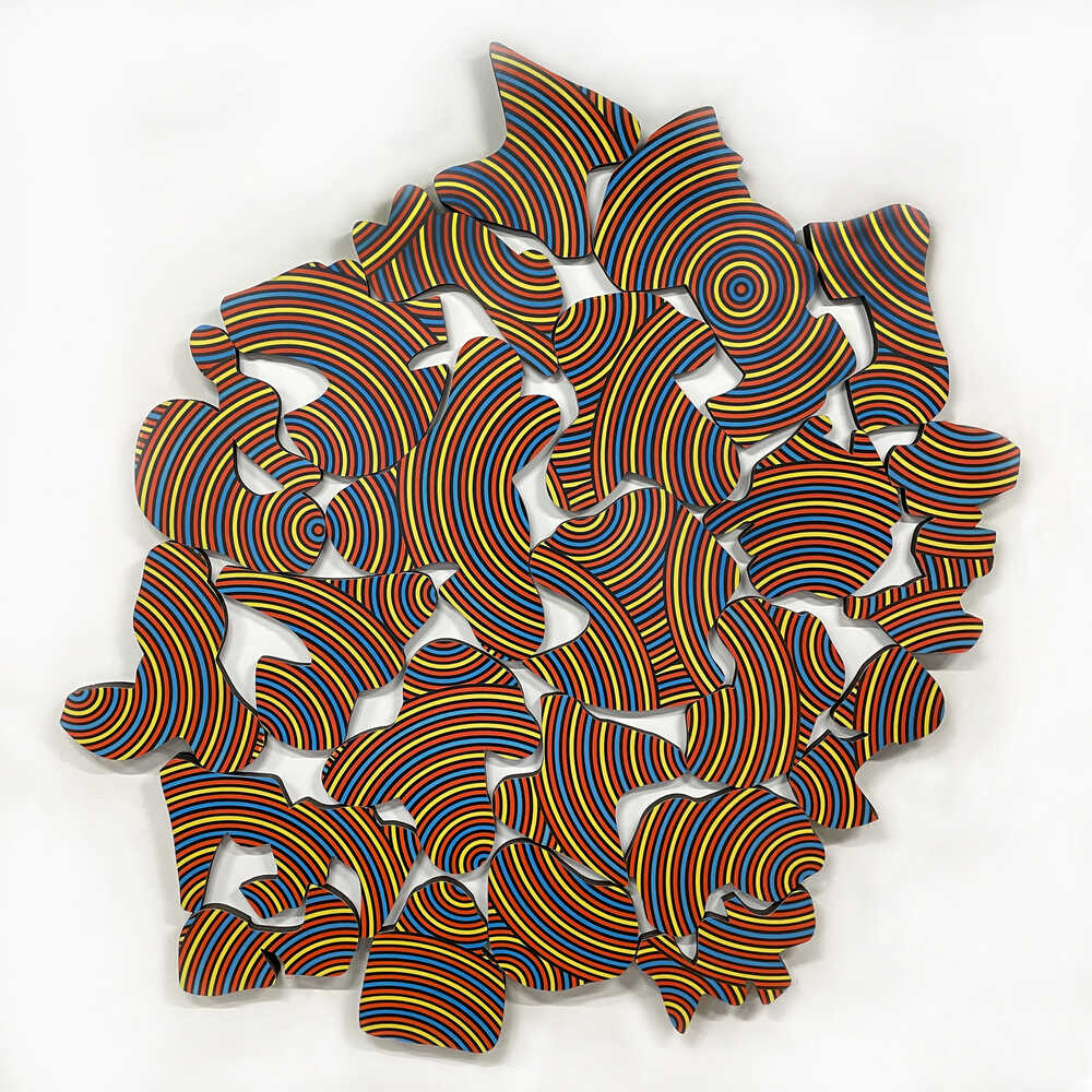 Materials: collage on 3/4" laser cut plywood shapes, mounted to 1/2" plywood