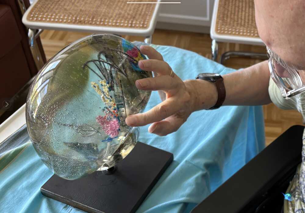 Die Kooperation mit dem international bekannten Künstler Cernetta entstand über die Galerie. Schmalfuß in Berlin. Ich wirkte als Auftraggeber und brachte die Ideen als Bildclips bzw.cells, auch in einem Fall als 3d- Helix und ein besonderes Fundstück aus der Wüste Gobi.(“Gobi Bear Droppage”) sowie kleiner Erdglobus.