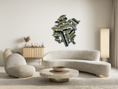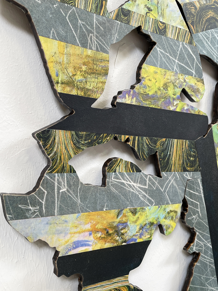 Materials: collage on laser cut plywood.