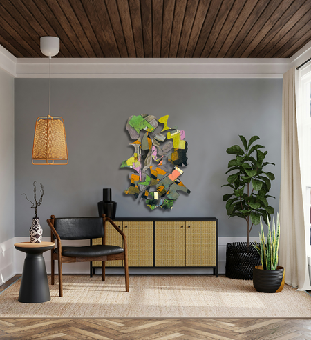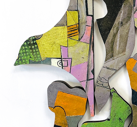 These works are made by appropriating images of iconic artworks from different historical periods that I mine from books, auction catalogs, and magazines. I select specific parts that draw me to their shapes, colors and textures. I cut, arrange and rearrange, playing with their complementary and contrasting attributes and create surprising, lyrical and visually confounding new compositions. I am often amazed at what results from the simple juxtaposition of unrelated forms. It is as if I have released some kind of latent energy in the original work.