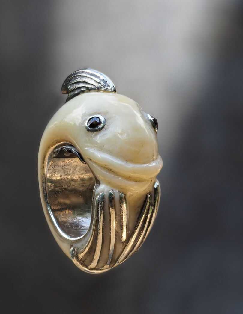35 years ago I made this fish ring from pertrefied wood and other natural materials.