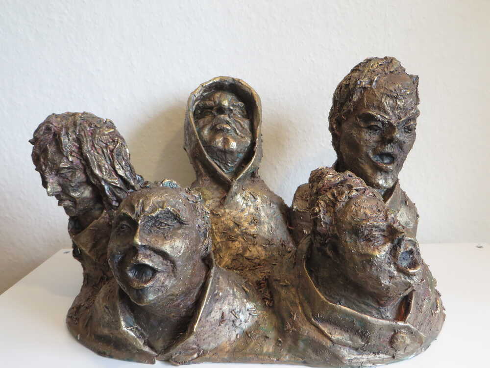 Der gesellschaftliche Wandel, der alle Lebensbereiche umfasst, löst bei vielen Menschen ein Gefühl der Hilflosigkeit aus, das schnell in Wut umschlagen kann. Wir sehen das in unseren Wendezeiten in allen Gesellschaften. Fast jeder kennt diese Wut, in fast allen steckt angesichts der rasanten Veränderungen ein Stück dieser Wut. Die Skulptur zeigt das.