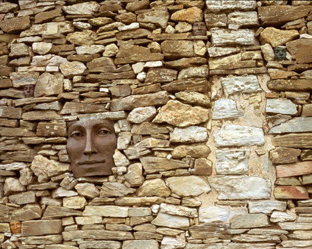 During the week Phil fixed the work into the walls of an old building in the centre of the village, whilst Diane made more faces in wax for Chris to cast into bronze on the spot, seven faces had previously been cast at his foundry.