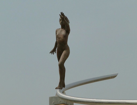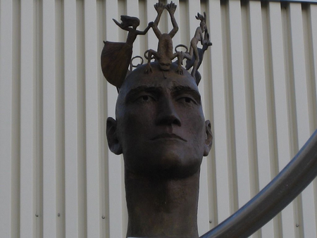 Our commission is sited to take full advantage of the designated space at the south end of the new atrium. Each Obelisk represents an art form; literature, visual arts and performing arts. Two of the Obelisks also support Diane's cast bronze elements, Thinking Head and Acrobat - they represent the central concept of creative thought leading to the creative act.They were cast at the local Pyramid Foundry.