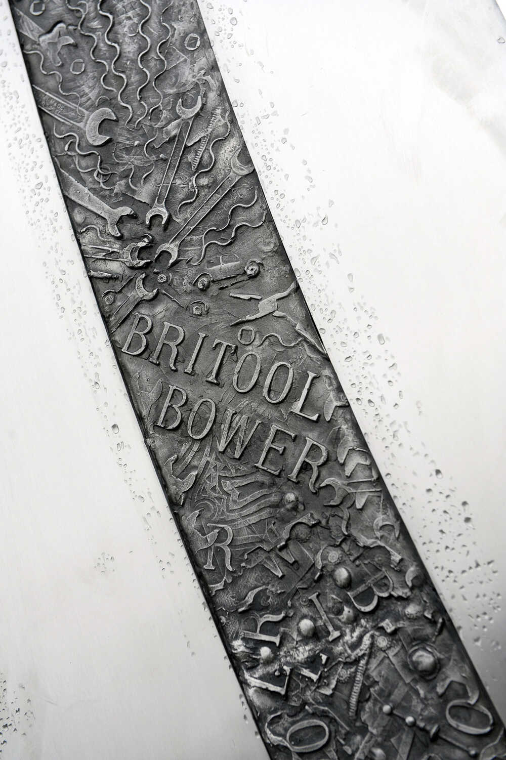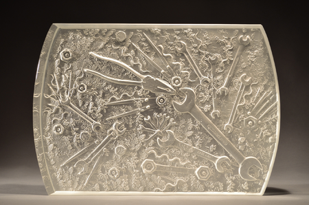 The Spanners were fabricated by Castle Fine Arts Foundry and they also arranged the casting of the stainless steel relief strips running down the centre of two of the sculptures. Jackson Fawkes Glass cast the glass inserts, made for the jaws of each Spanner.