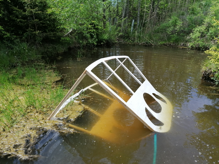 Kunstinstallation aus Papier und Sperrholz , Luftig leicht schwebend am Sommerholzer Wald aufgetaucht, 30 Tage