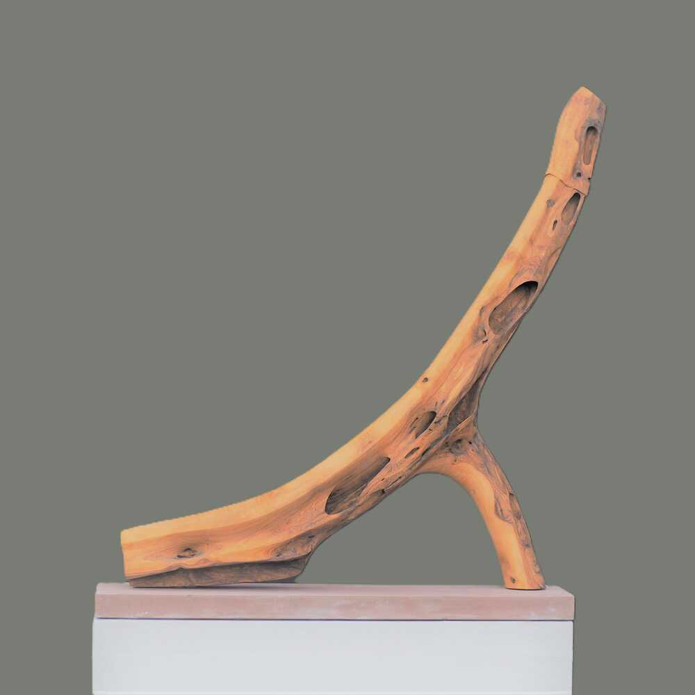 Die andalusische Olive erzählt aus uralten Zeiten, auch von verschütteten Ängsten, die der Betrachter zunehmend furchtlos anschauen kann. Durch das richtige Einordnen in das aktuelle Leben entsteht Klarheit. Die Umwicklung des Sockels mit einem Gipsverband verheißt nahende Heilung.