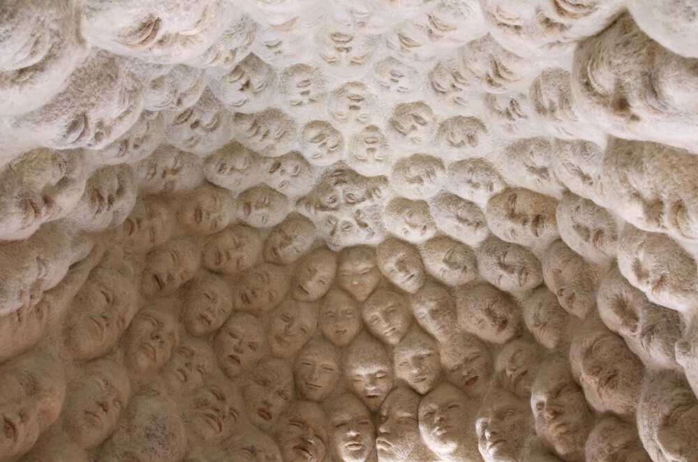 One of my most important works, the „Housing", a small tent-like building, is so to speak the mother of all other works. Inside it is covered with over 160 faces, including my very first works.