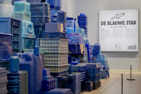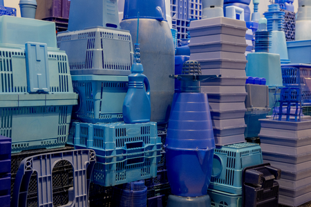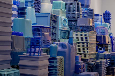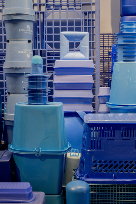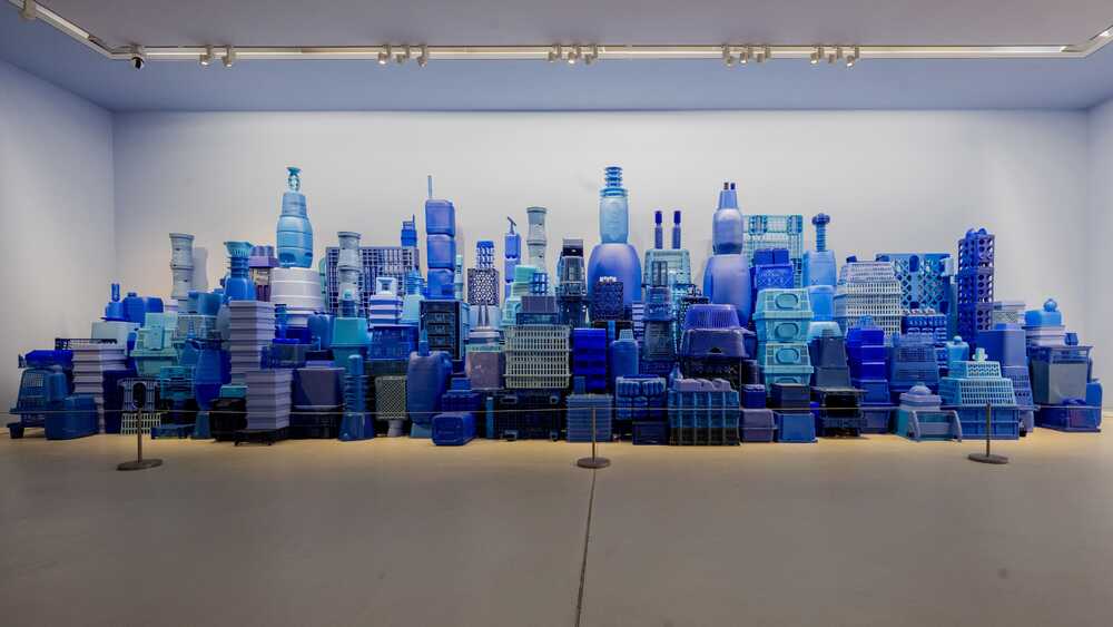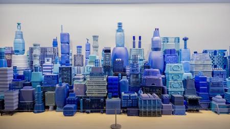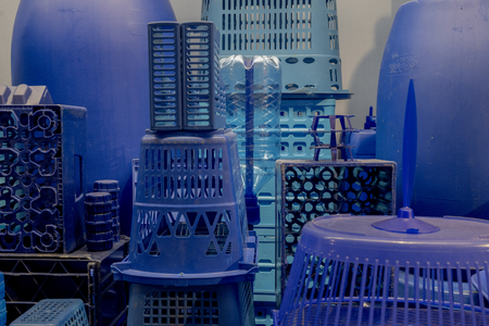Assembly made from blue plastic waste.